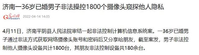 济南平阴:男子控制1800个摄像头偷窥 获利40元 被判刑